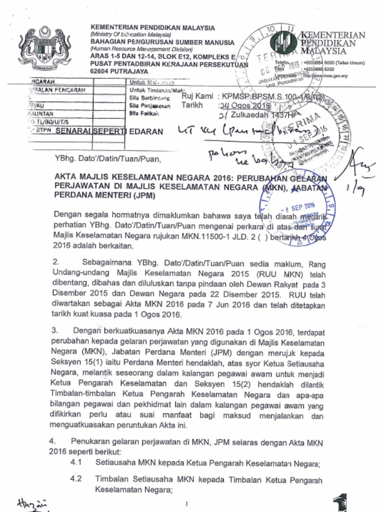 Akta Majlis Keselamatan Negara 2016 Perubahan Gelaran Perjawatan Di Majlis Keselamatan Negara Mkn Jabatan Perdana Menteri Jpm Pdf